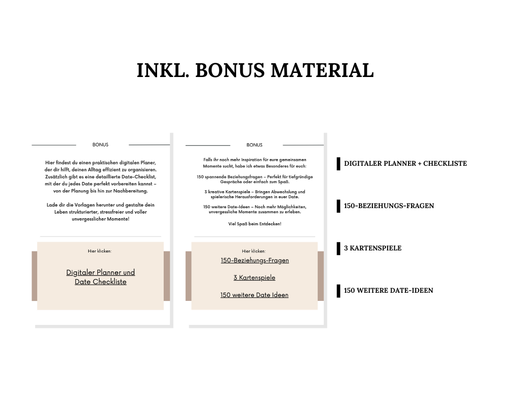 CoupleCouch ist ein digitales Produkt mit kreativen Date-Ideen für Paare, inklusive Reflexionsseiten und Bonus Materialien.